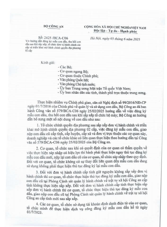 Riêng các đơn vị nào vẫn dùng con dấu do Bộ Công An cấp, thì phải làm thủ tục đổi con dấu để dùng theo quy định