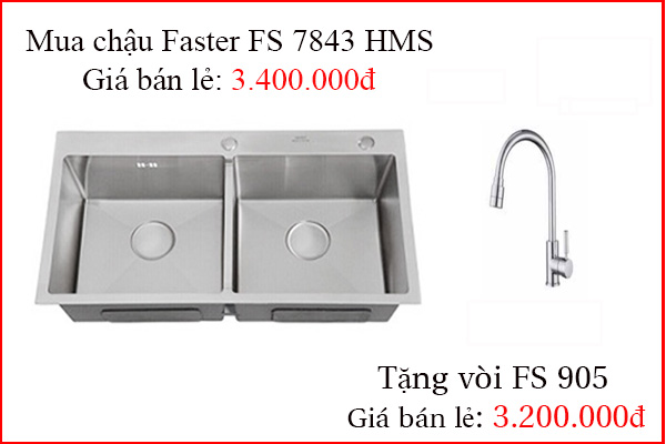 3.Chậu rửa bát Faster FS 7843 HMS tặng vòi Faster FS 905