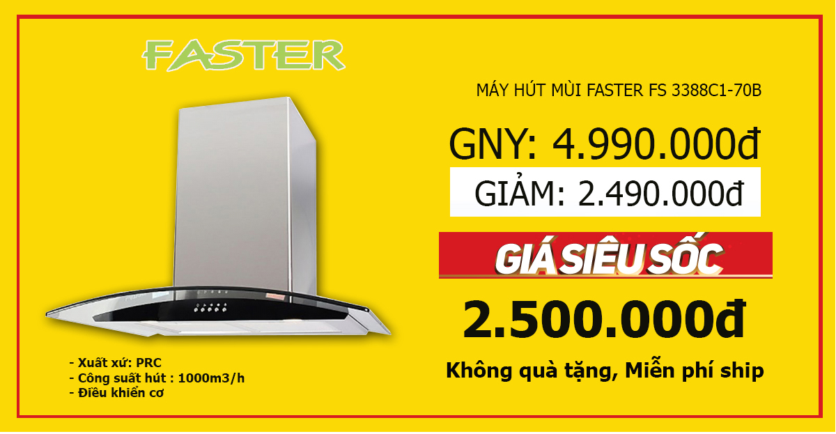 Chỉ với 2,5 triệu bạn đã sở hữu ngay một chiếc máy hút mùi có thiết kế bền, đẹp, dễ dàng sử dụng và vệ sinh của Faster. Mức giá này hiện là cực tốt so với giá bán lẻ trên thị trường hiện nay. Lưu ý giá trên Bếp Cường Thịnh hỗ trợ giao hàng và không có kèm theo quà tặng gì thêm nhé