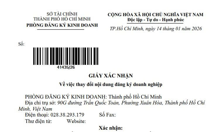 bản e nhận được chỉ có giấy xác nhận thay đổi đó thôi ạ, không còn giấy phép thay đổi lần ... nữa đúng không ạ