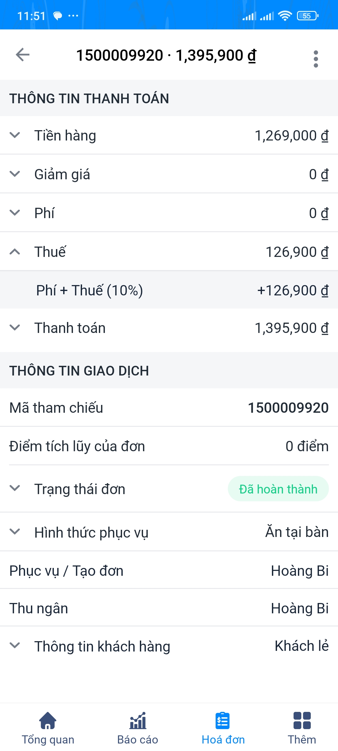 Khách hàng phải TT 1.395.900 , Nhưng HĐ LK thuế chỉ có 1.269.000