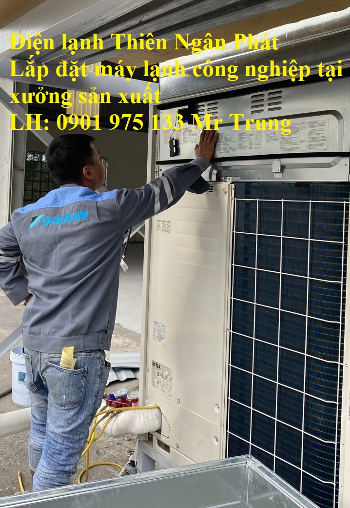 Máy lạnh tủ đứng công nghiệp nối ống gió lắp đặt tai xưởng xí nghiệp - KCN Tân Đô