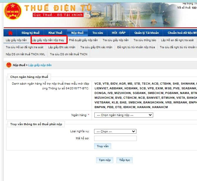 Cả nhà cho mình hỏi, Chi nhánh không đăng ký số tài khoản. Giờ công ty nộp thuế thay cho chi nhánh thì nộp như nào nhỉ? Phần lập giấy nộp tiền thay lại yêu cầu nhập MST nhà thầu. Mình nhập thử MST chi nhánh thì báo sai.